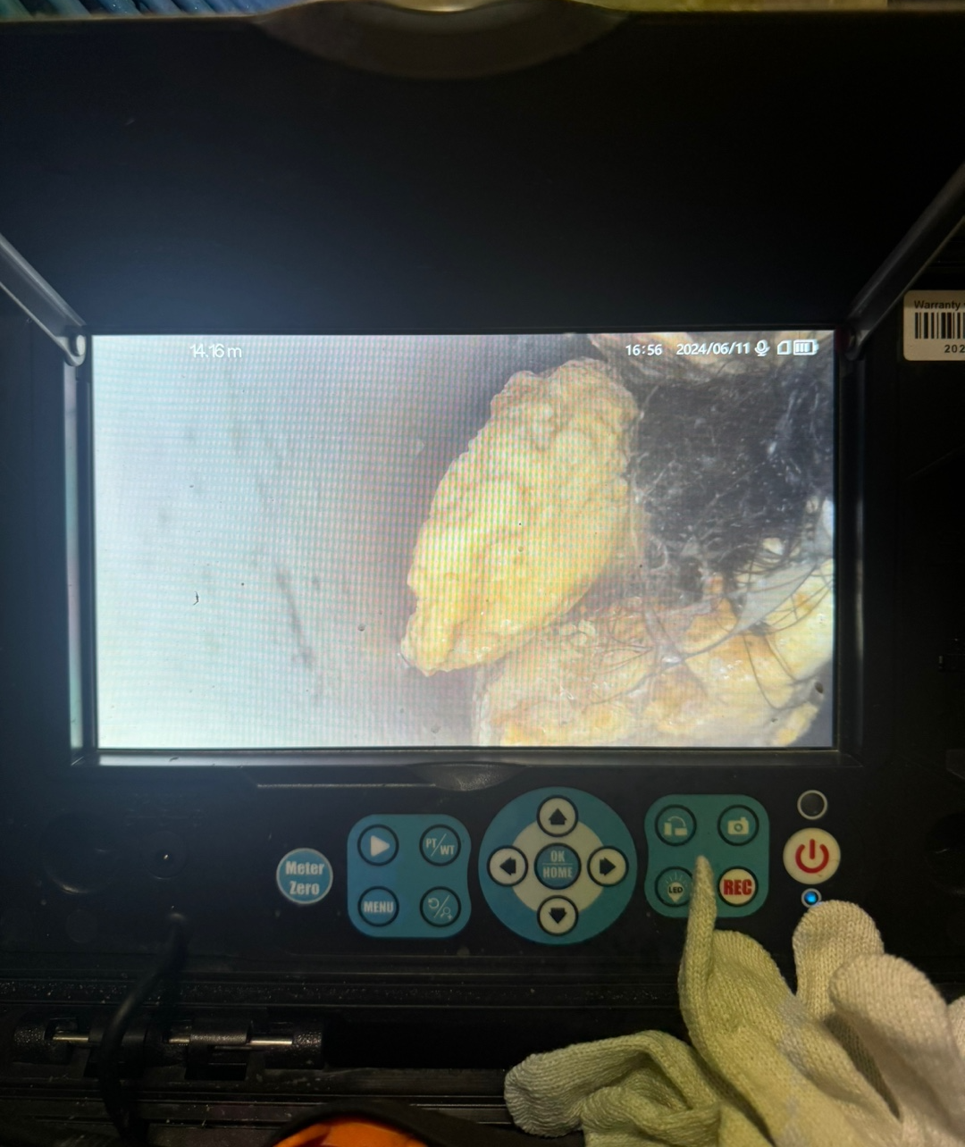 하수구 배관의 막힌 부분을 찾기 위해 발빠르게 내시경카메라 촬영을 시도했습니다.