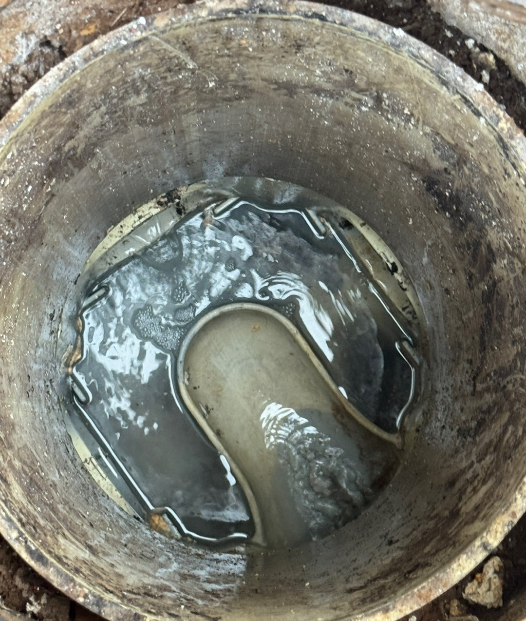 이물질로 배관하수구통로가 완전히 막혀 물이 빠져나가지 못하는 상태였습니다.